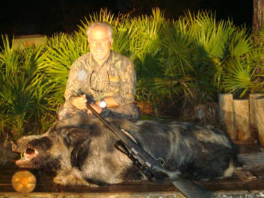 Florida has the second largest wild hog population, and hunting giant trophy boar,and meat hogs on our ranch you will see why they are estimated at 500,000, in Florida. Florida Wild hog or trophy boar hunting plays an important role in controlling the population in Florida.You can trace florida hogs, meat hogs, and trophy boars back to 1536,when the settlers moved hogs and trophy boar into Florida. By not keeping these hogs pined up eventually hogs, and trophy boars were running wild all over florida. These hogs and trophy boars turned wild and reproduced fast. Florida in 1958 declared wild hogs and trophy boar a game animal, making them a hunting sport in florida. Florida now calls wild hogs and trophy boar an invasive species.Hog hunting in florida is allowed year round with no hog bag limits,hog size limits or licenses required. Florida Wild hogs and trophy boar may also be hunted at night with a hog light.We offer florida hog or trophy boar hunting packages that can be combined with exotics, florida alligators, whitetail deer and other hunts.